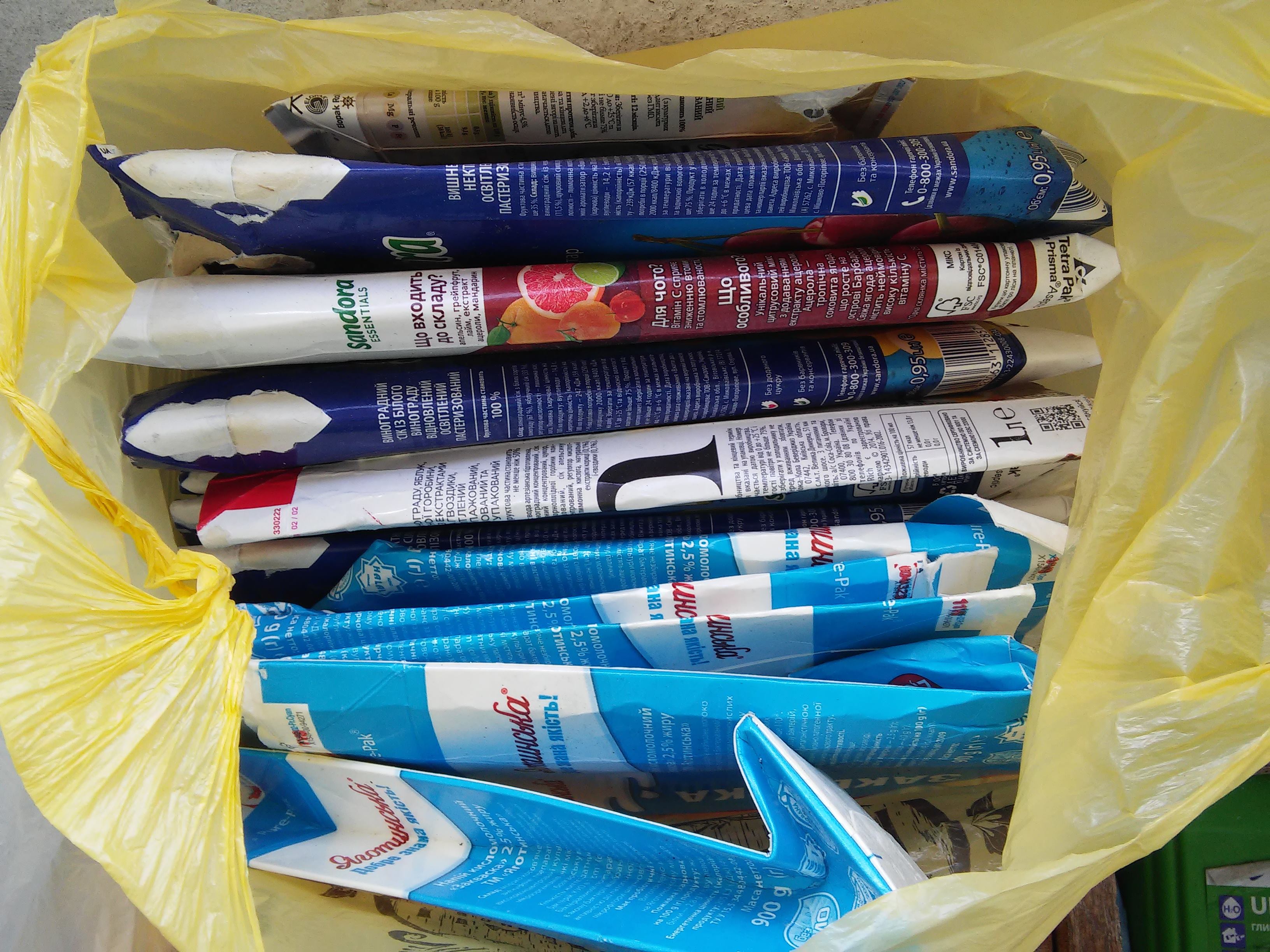 Оскільки я не zero waste, і сміття у мене вдома з’являється, я його завжди сортую. Окремо збираю макулатуру, скло і різні види пластику, алюмінієві банки та бляшанки. Найчастіше в моєму побуті на переробку йдуть такі види упаковок: